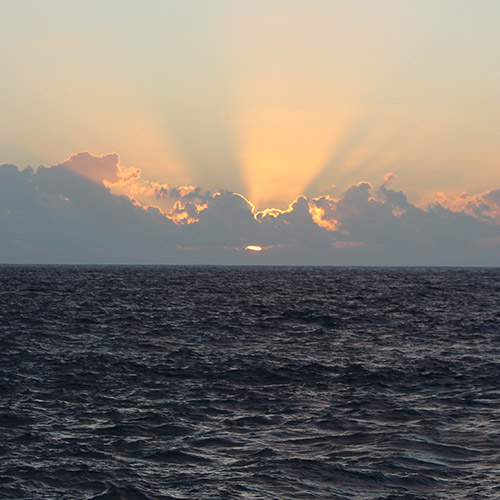 The Sun shines as a star –litreally and visualy- just before setting in the sea of clouds below me as I stand on the top of mount Monakea