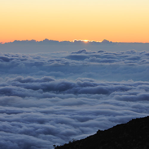 The Sun shines as a star –litreally and visualy- just before setting in the sea of clouds below me as I stand on the top of mount Monakea